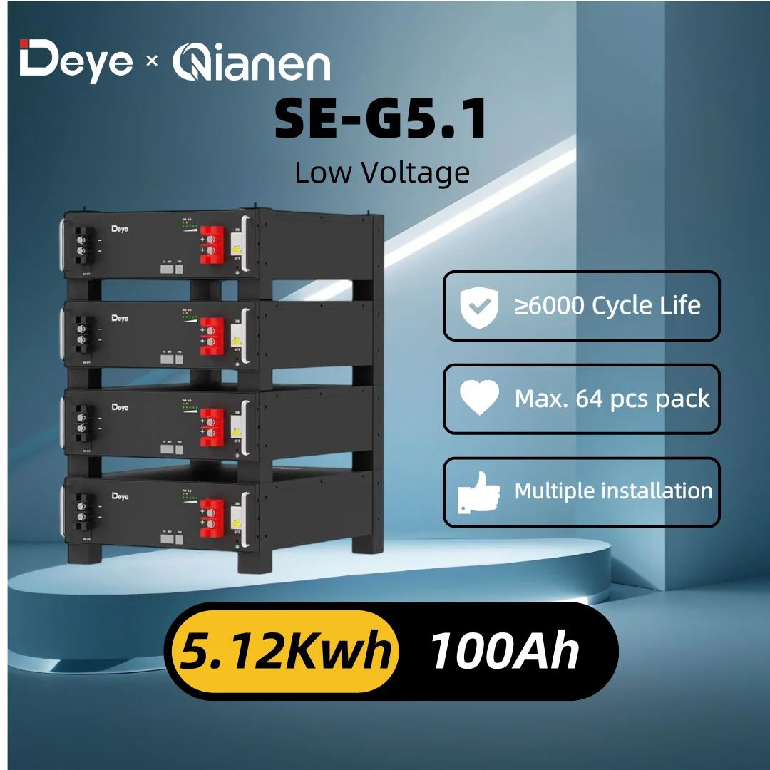 Deye 2025 New Arrival SE-G5.1 100Ah 51.2V 5.12Kwh Home Lithium LiFePO4 Battery Power Packs CAN Communication 5-Year Warranty