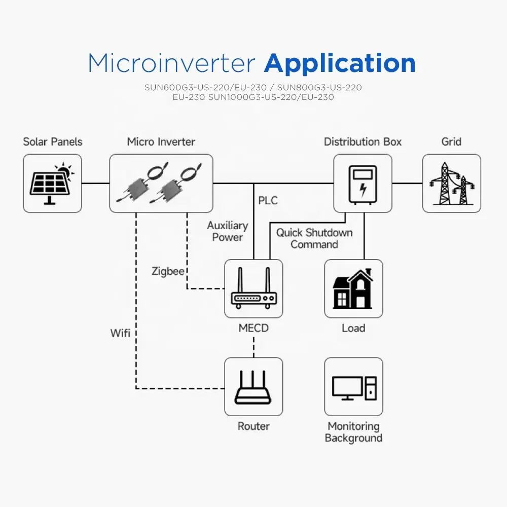 For SUN-M130/160/180/200/220G4-EU-Q0-I On-Grid Micro Inverter 1300W 1600W 1800W 2000W 2200W Solar Panel System Single 15-Year