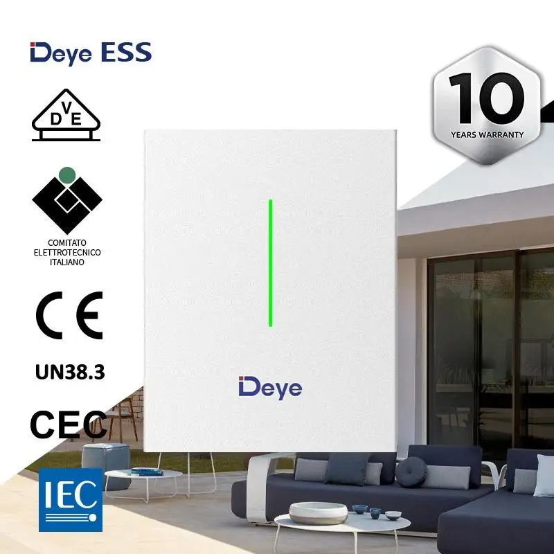 High Performance Wall-mounted Deye RW-F10.2 51.2V 200Ah 10kWh IP65 Energy Storage LiFePO4 Lithium Battery Solar 10-Year Warranty
